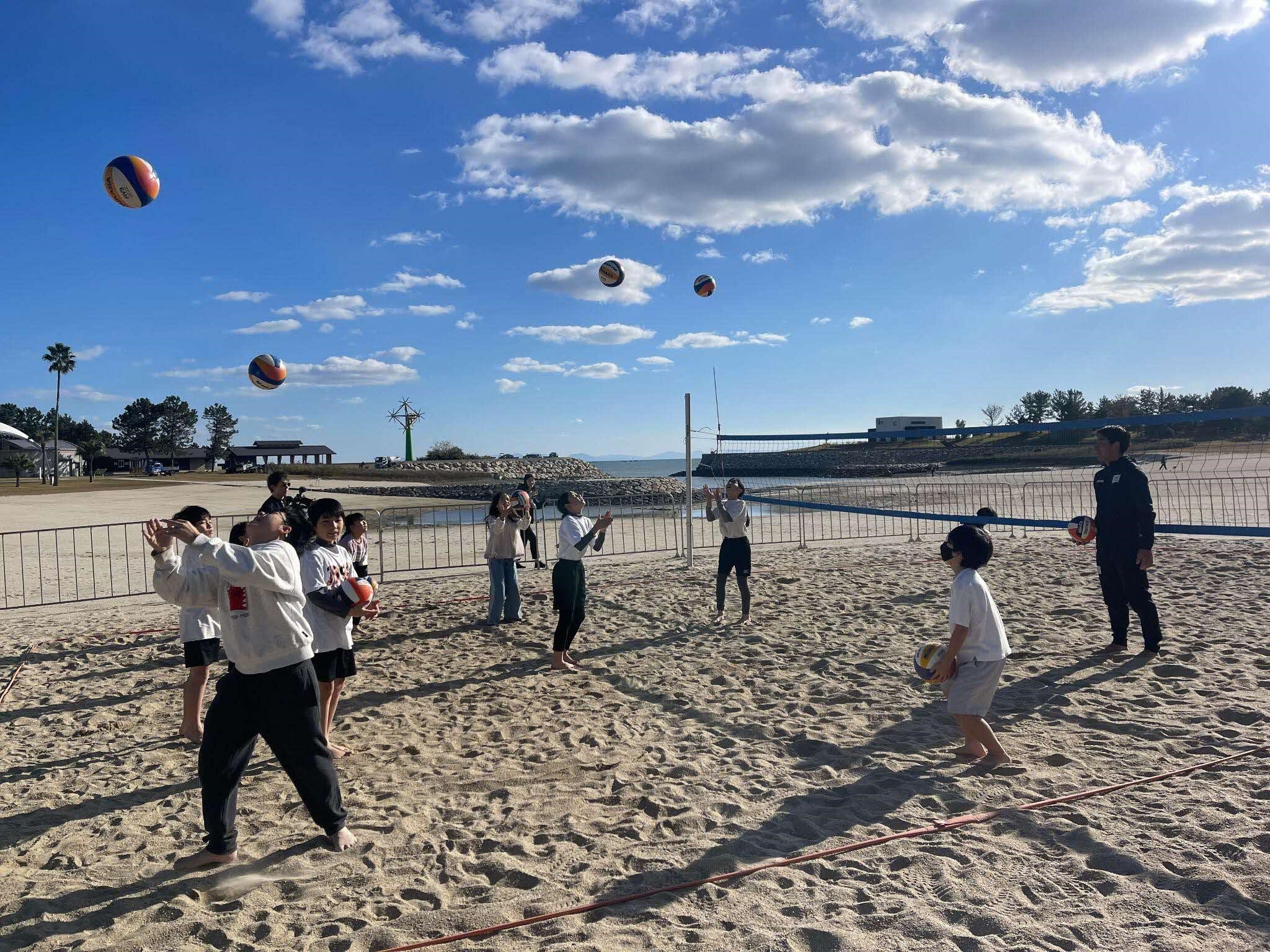 普段は室内でバレーをしている子どもたち。初めての砂浜でのビーチバレー経験を通して「意外とコートが小さい」「裸足だから足の裏が痛い」など、自分たちの知っている「バレー」との違いを楽しんでいました。また、他の子どもたちからは、「砂の上だと、思うように動けない!」という声も。
